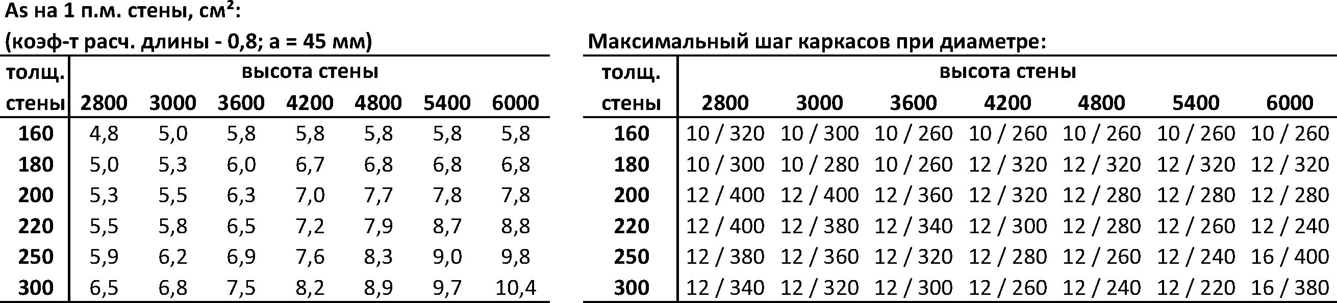 Минимальное продольное армирование стен